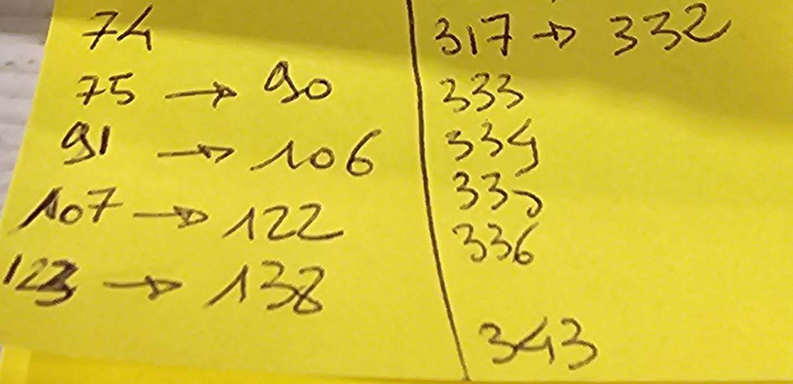 33 à 50, … ,280 à 316, etc. … jusqu’à la 354.
