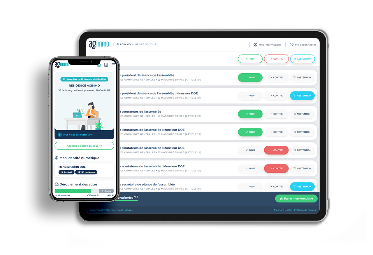 Tout copropriétaire ayant voté en ligne peut également se rendre physiquement à l'assemblée générale et prendre part aux votes sur tablette tactile.